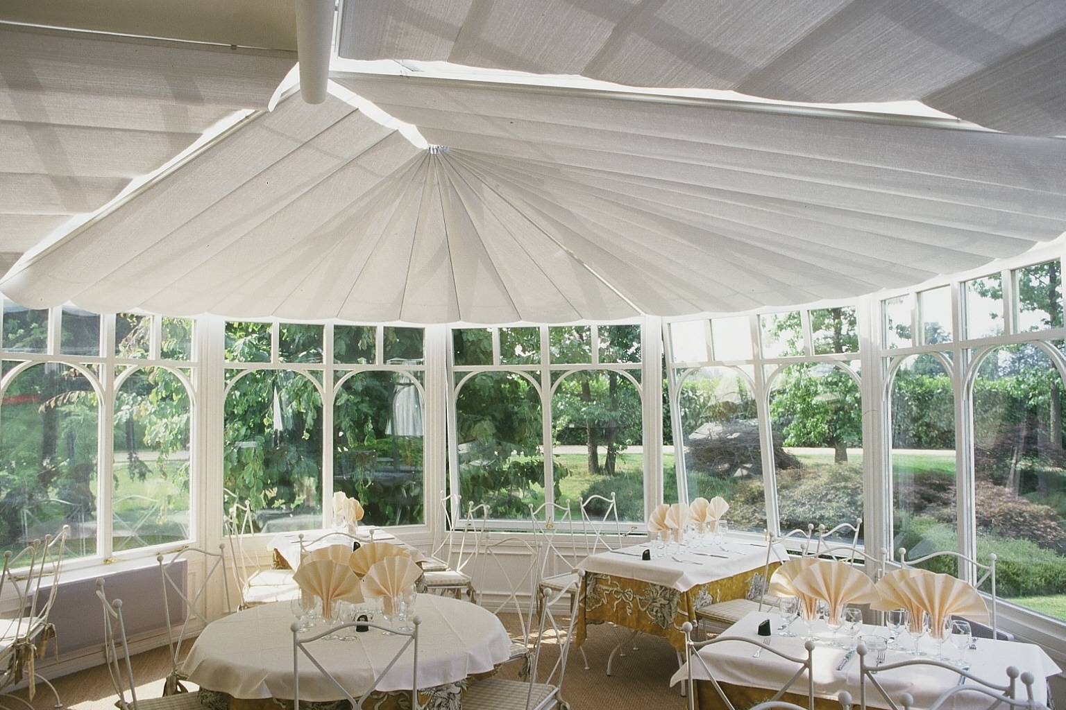 Le store anti chaleur velum HABANIKO est un store horizontal pour véranda en forme d’éventail. Particulièrement adapté pour protéger du soleil les vérandas de type victorien, fabriqué sur mesure, il peut recouvrir toutes les surfaces vitrées arrondies : régulières ou pas !